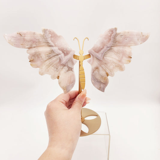Pink Amethyst Butterfly Wings with Stand - HYY