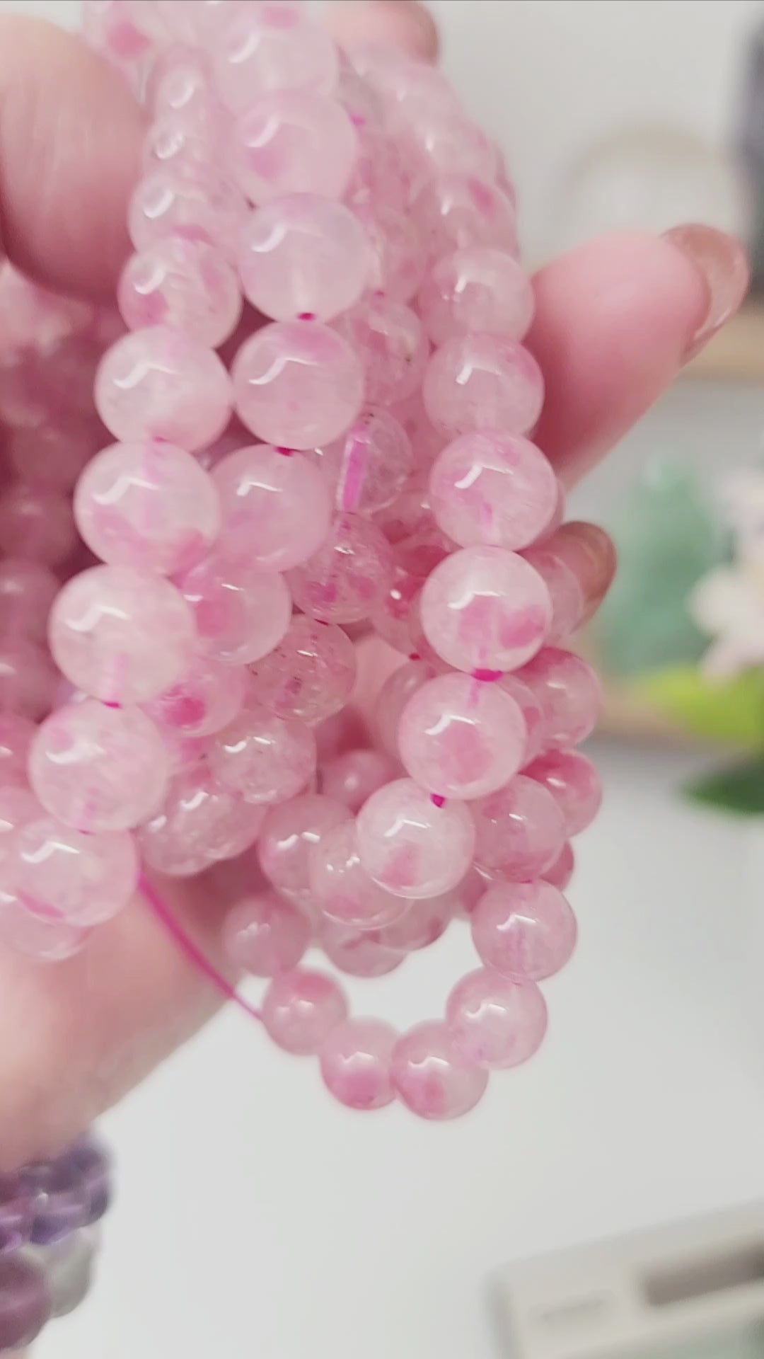 This handmade bracelet features icy rhodonite beads, known for their soft, cooling tones and nurturing energy. Rhodonite is celebrated as a stone of emotional healing, compassion, and self-love, helping to soothe emotional wounds, calm stress, and restore balance to the heart.