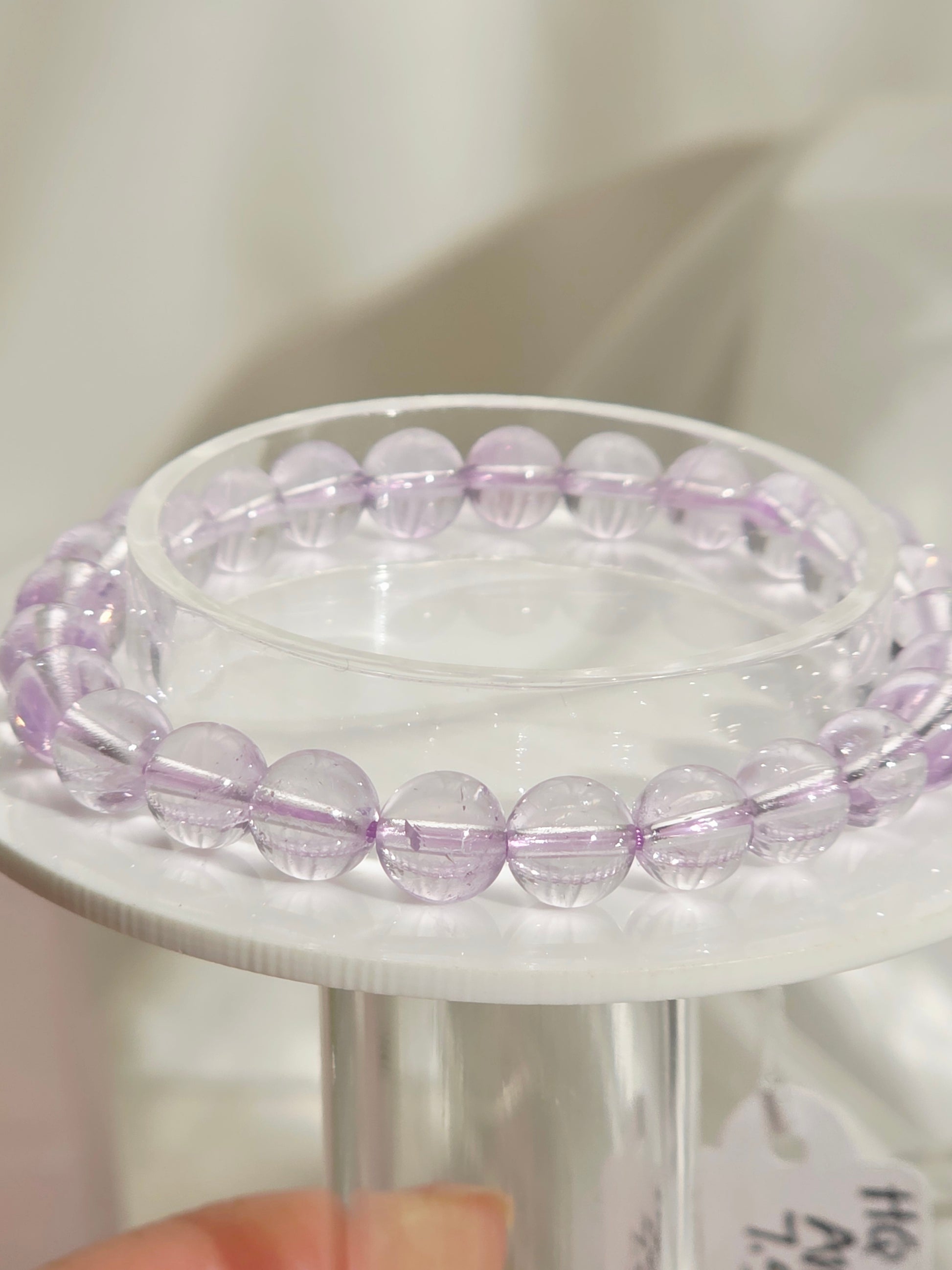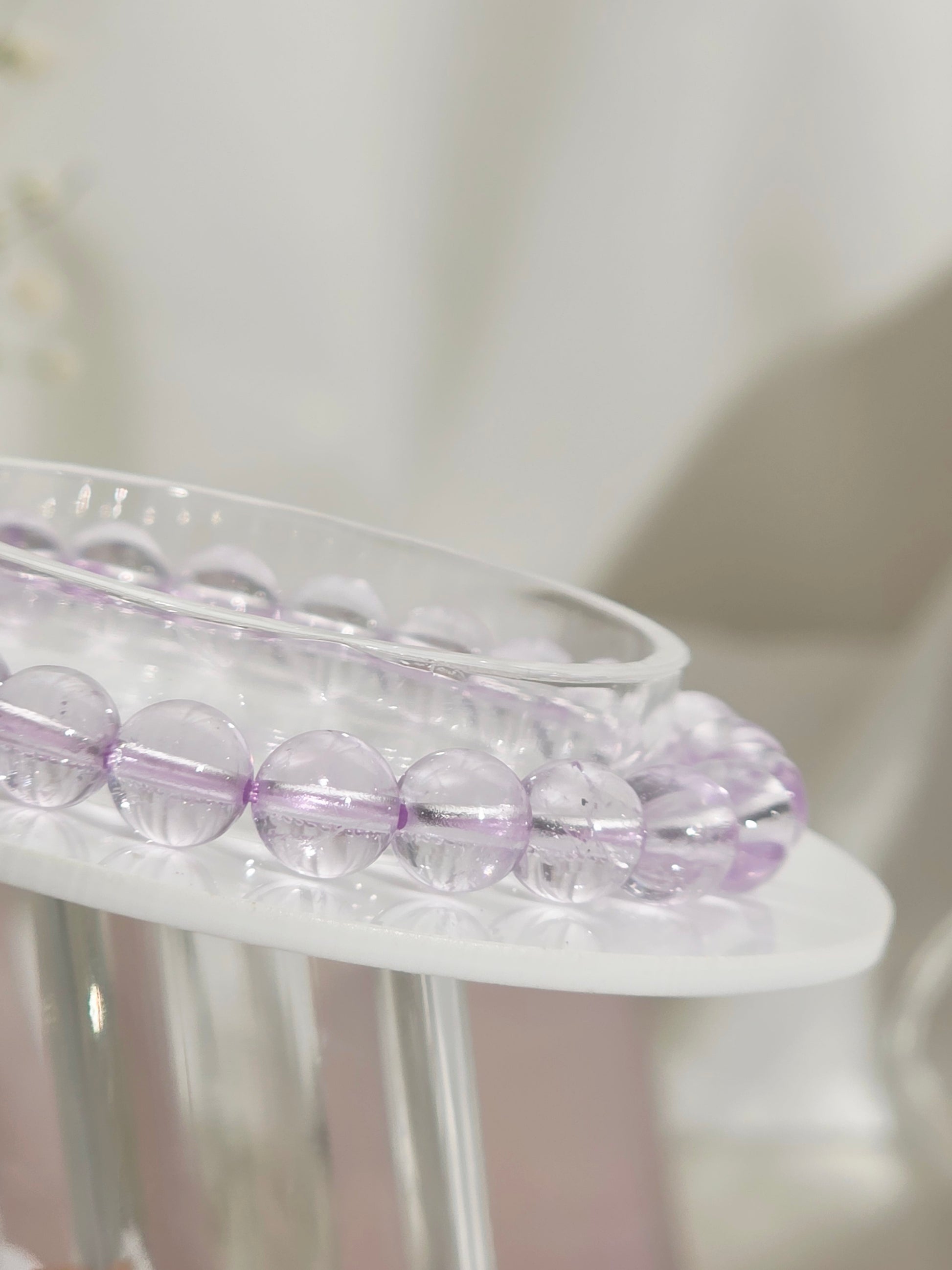 This handmade bracelet features soft, luminous light amethyst beads, a crystal celebrated for its gentle, uplifting energy. Light amethyst is known for enhancing self-awareness, mental clarity, and concentration, helping you see yourself more clearly and connect with your inner wisdom.