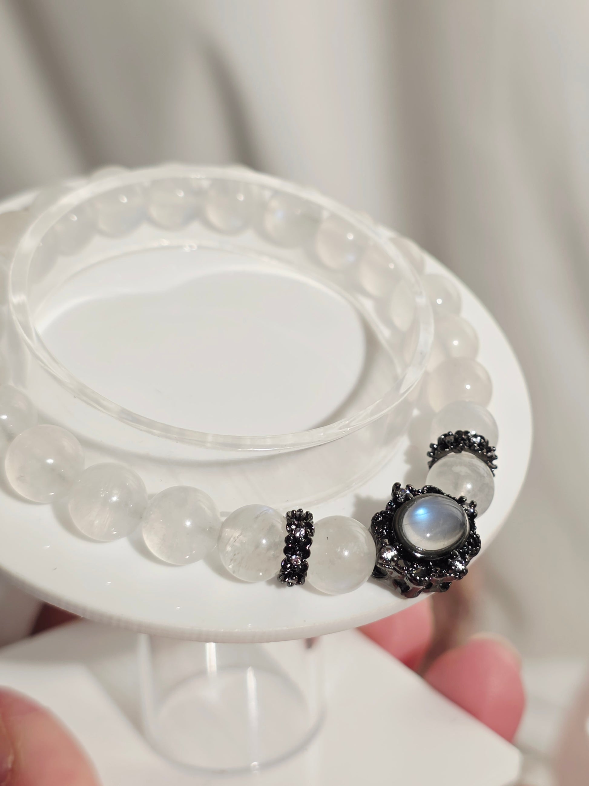 Luna is a handmade bracelet featuring luminous moonstone beads, designed to evoke the gentle glow of the moon and support your emotional and spiritual well-being.