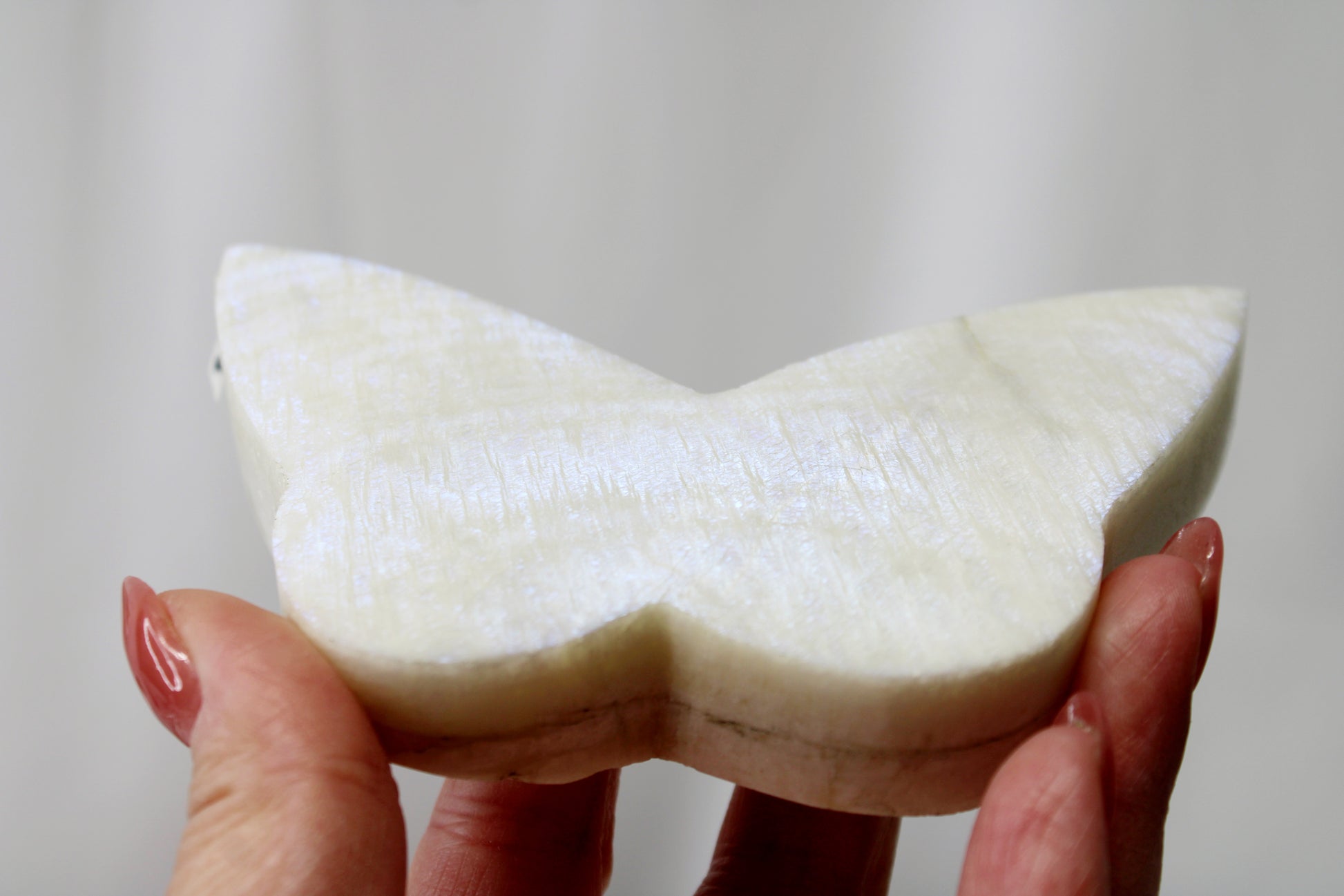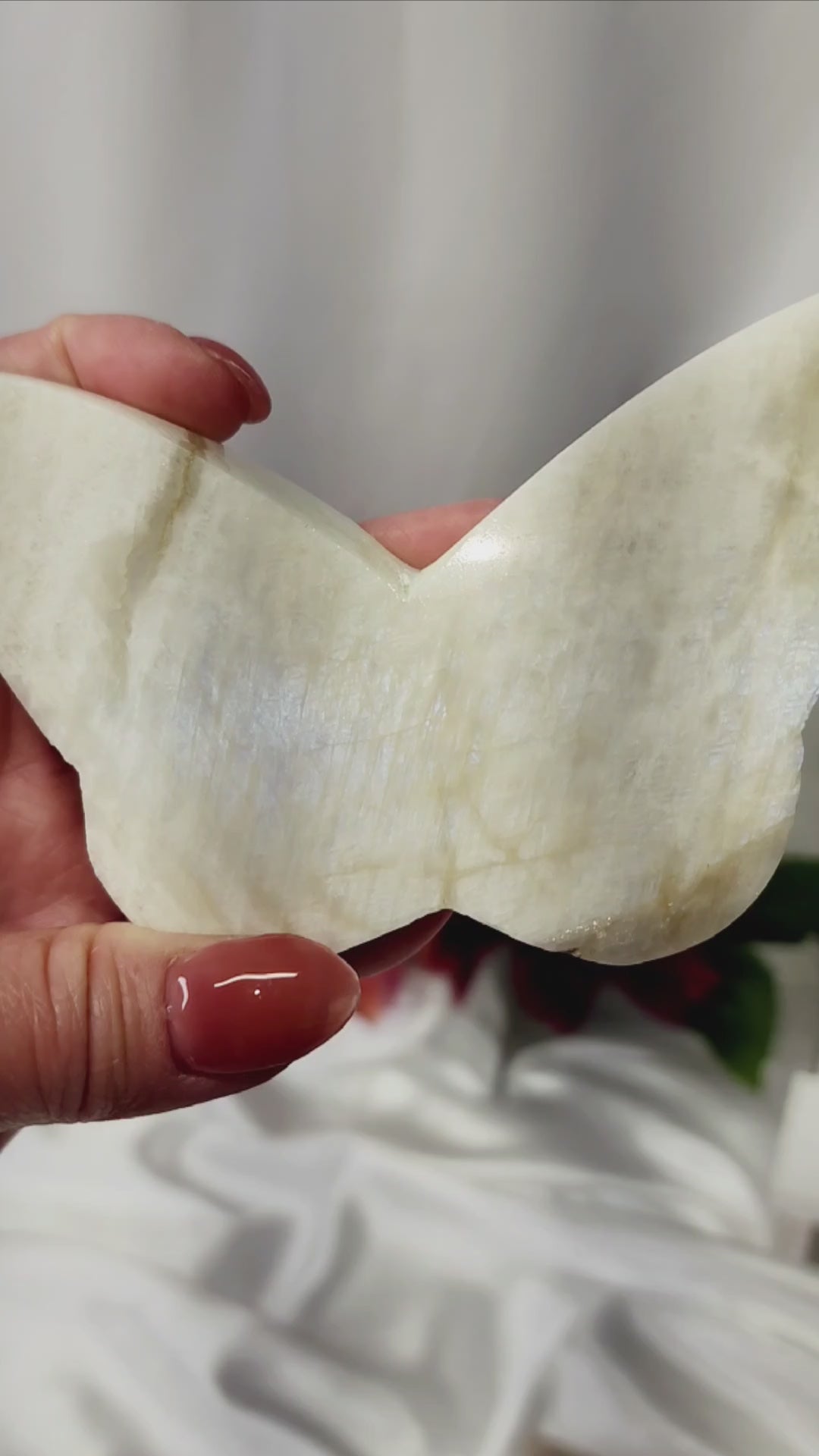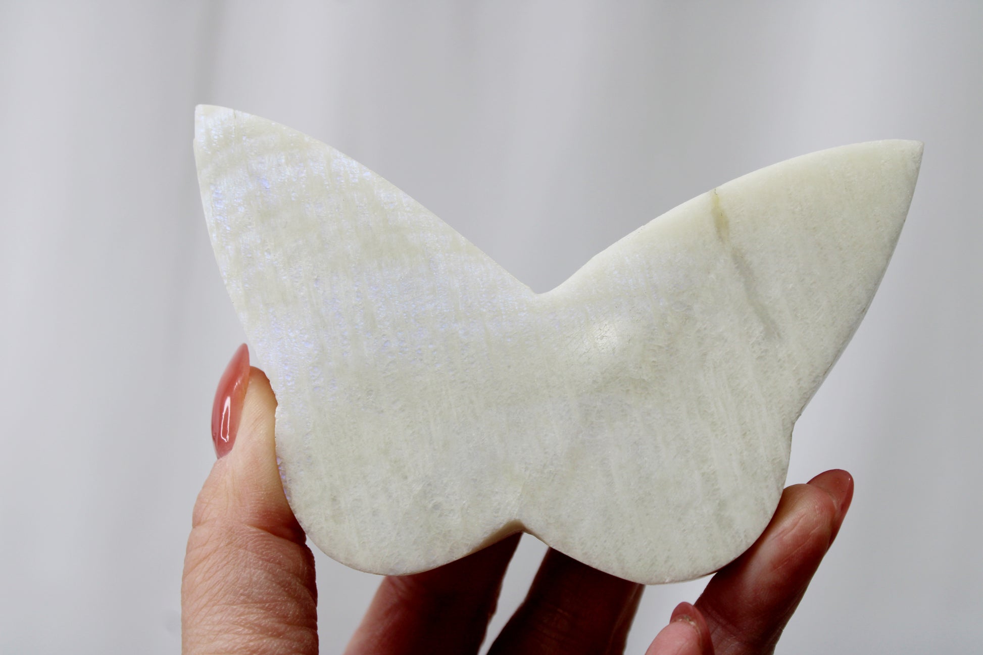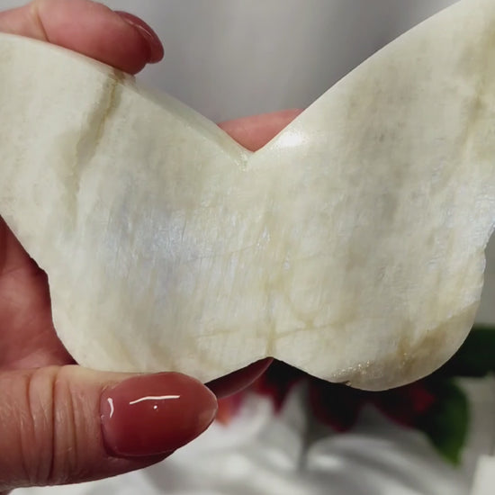 Embrace transformation with this exquisite moonstone butterfly carving, a powerful symbol of change and personal growth. Moonstone's gentle energy supports emotional balance and intuition, while the butterfly represents freedom and metamorphosis. This piece channels feminine energy and lunar wisdom, making it an ideal companion for those navigating new beginnings or seeking spiritual clarity. Whether you're enhancing your psychic abilities or simply honoring your journey of self-discovery, this carving serves as a beautiful reminder that change is natural and necessary for growth.